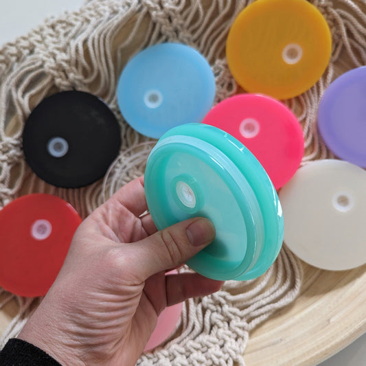 BPA free acrylic coloured lid for the 16oz glass can cup with silicone seal. Tumbler lid.