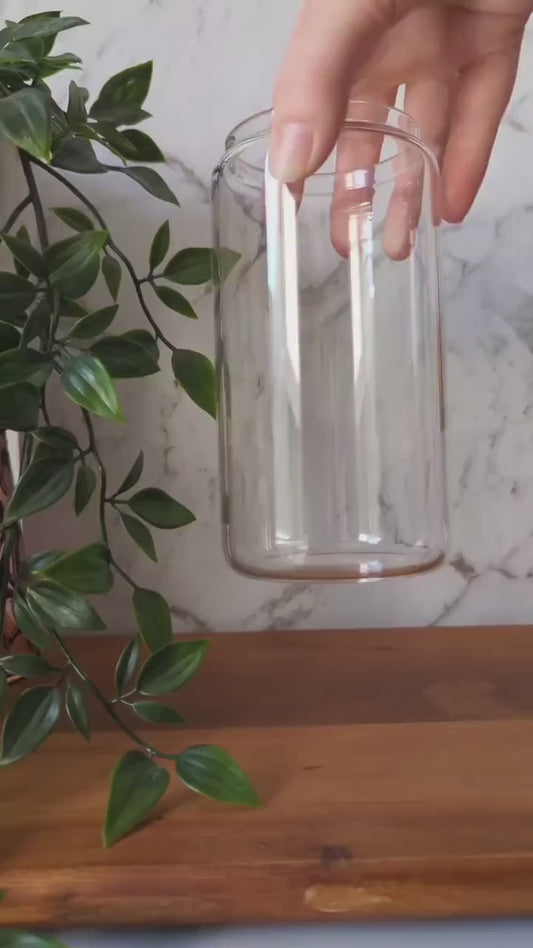 Boho cute flower 16oz glass can cup or 17oz glass mug with bamboo lid & reusable straw. Clear or frosted. Cute iced coffee cup. Iced tea