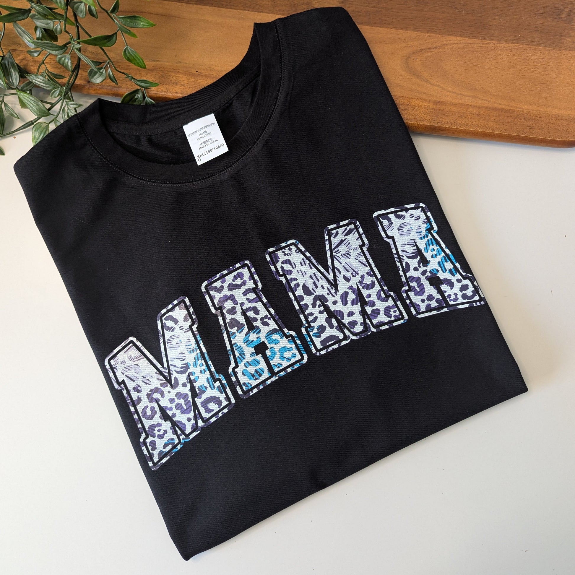 This super unique blue tones leopard print MAMA varsity lettering tshirt is an awesome way to be loud and proud. Available in sizes S- 3XL in a womens AU size tshirt. The perfect gift for mum or maybe just for yourself